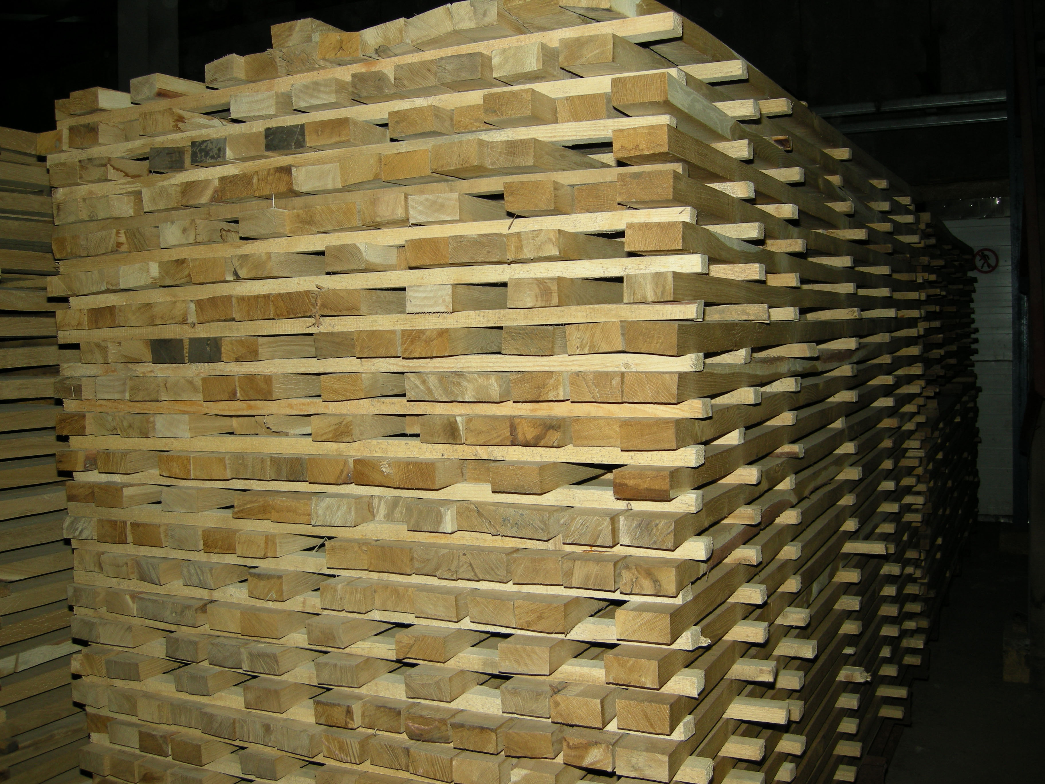 Пиломатериал хранится в штабелях, уложенных на прокладках.